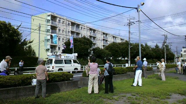 宣伝カーの上で