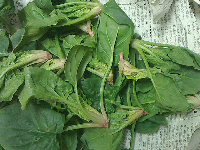 母の畑のホウレン草(写真)で