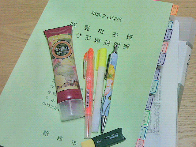分厚い予算書やら資料やらを