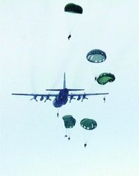 パラシュート降下訓練。