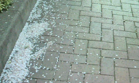 さくら絨毯の上を